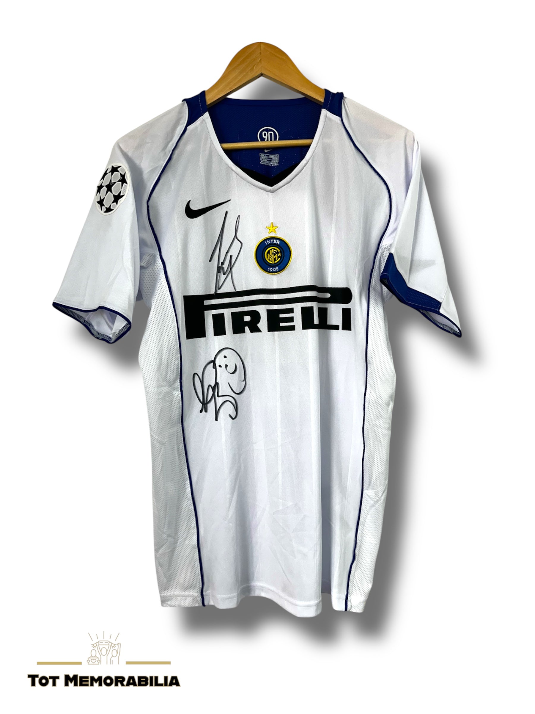 This signed Inter Milan shirt/jersey bears the autographs of legends Javier Zanetti and Marco Materazzi. Perfect for any fan or collector, this rare piece comes with proof of authenticity. Own a piece of history and proudly display your love for these iconic players!